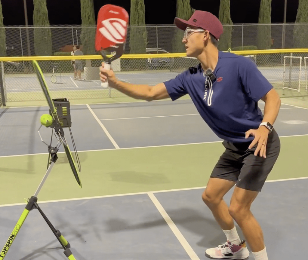 Keeping your head up at contact will stop you from hitting the ball in the net. Tip: Watch the ball all the way onto your paddle at contact.