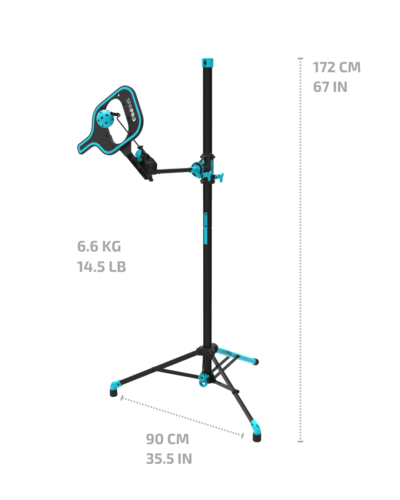 The package size and weight of SpinPro: 98cm x 30cm x 17.5cm / 6.6kg (14.5lb), the footprint is an equilateral triangle with 90 cm (35.5 inch) sides